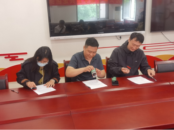 团委书记边泓旭老师和管理学院团委书记周峰老师于4月28日分别代表各自学院和石门社区中心党委副书记、居委会副主任宋红霞、杨会永签署实践结对协议。