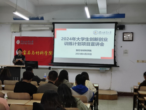 于4月28日在教学一号楼201室开展2023年--2024年“大学生创新创业训练计划”宣讲会。
