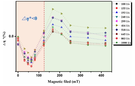 非晶磁性液体的Δη*与磁场强度的关系