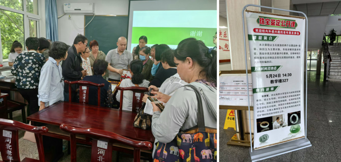 宝石及材料工艺学专业教师宋彦军副教授应邀到河北老年大学为校内外老年朋友讲授主题为《翡翠、和田玉的鉴赏与评价》的公开课,公开课在河北老年大学教学楼进行并同步线上直播,面向校内外老年朋友免费开放。
