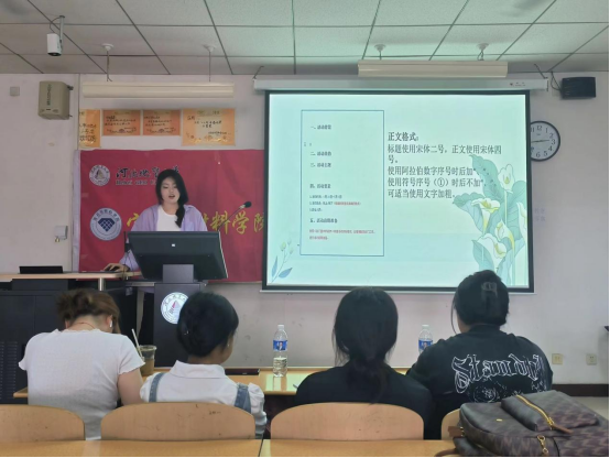 组织部部长刘育欣则对如何撰写策划案进行了详尽的说明,并从组织文案的细节入手,着重讲述了其中活动背景、活动流程以及预算安排等要素,还有字体和符号序号规范等,同学们除去这些专业知识的接收,更明白了全面考虑问题的重要性。