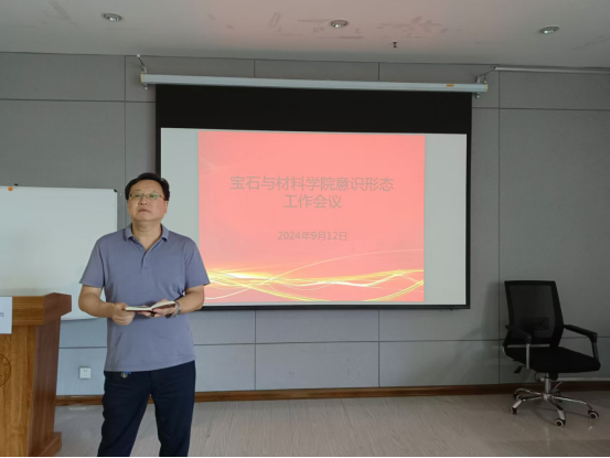 在综合楼珠宝大讲堂召开意识形态专题工作会议,全体教工参加了会议,学院党委书记王旭辉主持会议。