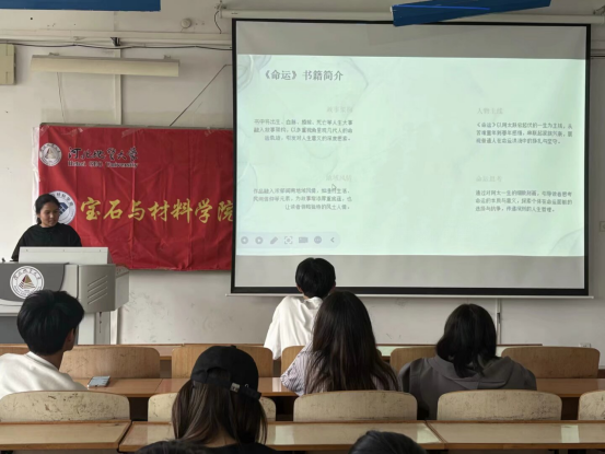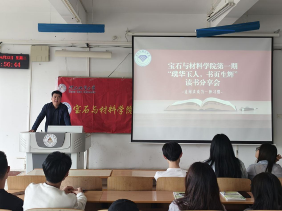 2025年4月22日,石与材料学院举办“璞华玉人,书页生辉”第一期读书分享会。活动以多元书籍为媒,聚焦经典文学、科普读物、历史传记等不同领域,30多名爱好阅读的同学参加读书分享,学院党委副书记王夕恋到会与大家共同分享读书心得,激发同学们的阅读热情,营造浓厚的读书氛围。