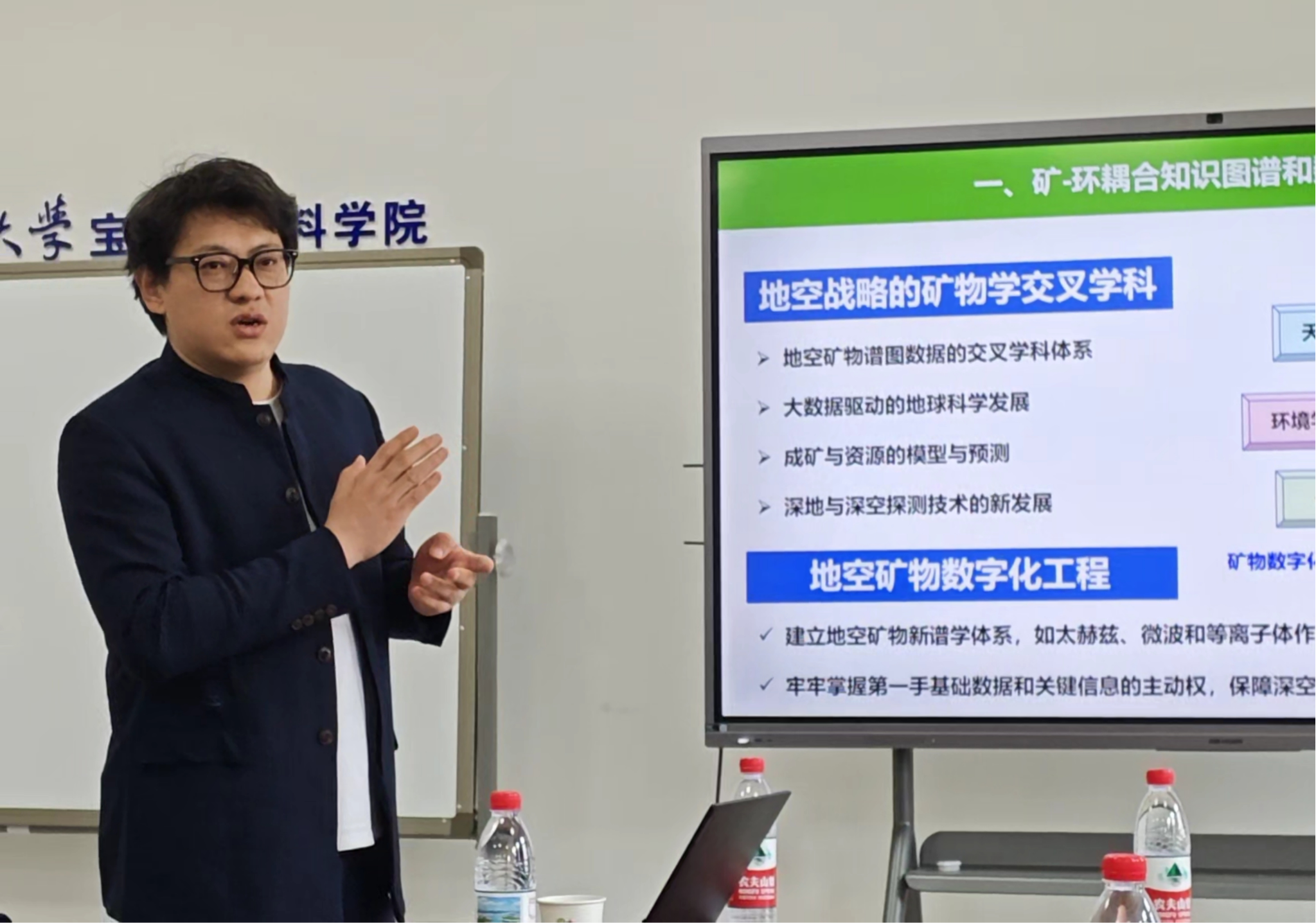 讲座环节,边亮教授以《矿—环耦合知识图谱和多尺度数字化平台》为题作专题报告。报告立足矿业与环境交叉融合的发展背景,系统阐释了矿环耦合知识图谱构建、多尺度数字化平台搭建及实际应用等核心内容。报告紧贴学科发展前沿,理论内涵深厚、实践指导性强,为全院师生把握矿物材料领域发展动态、开拓研究思路、创新研究方法提供了有益借鉴。