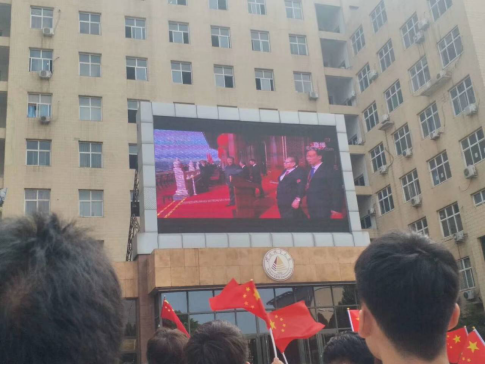 主楼前组织全体党员和预备党员观看了阅兵仪式。此次活动到场的嘉宾有辅导员张曼琳老师以及宝石与材料工艺学院党支部。