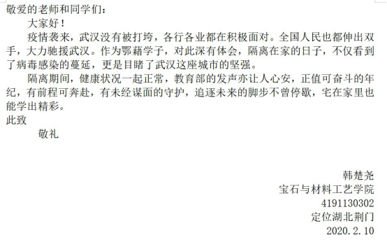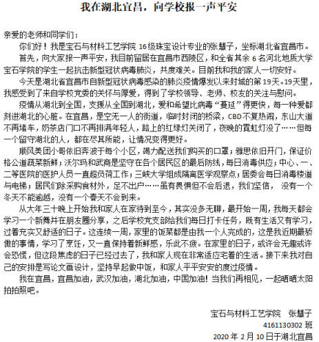 请学校放心,一切安好!---湖北籍学子向母校报平安