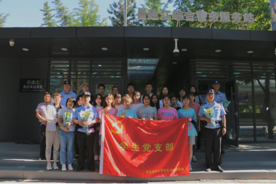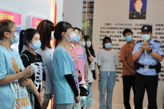 谷月娟书记、学生党支部书记张曼琳老师,辅导员付立新老师和部分预备党员学生在吕建江综合警务服务站参观“时代楷模”吕建江先进事迹展馆。吕建江同志生前系石家庄市公安局桥西分局原安建桥综合警务服务站主任,是全省优秀军转干部,全国优秀人民警察。