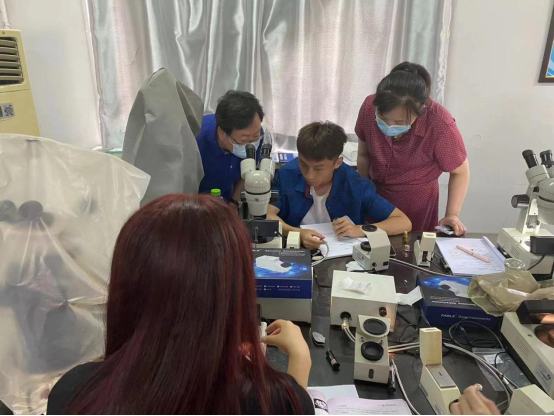 李院长和王书记分别走访了大二宝石及材料工艺学专业的有色宝石学实验课和大一产品设计专业的贵金属材料工艺学实验课。学生到课情况良好、听课认真,学习专注性较强。李院长和王书记与同学们亲切交谈,深入到学生中去,掌握学生的学习状态和学习进度,并提出宝贵意见。