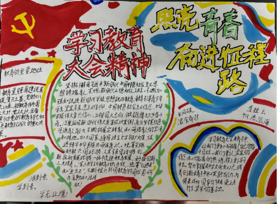 鼓励同学们以手抄报为载体,将习近平总书记在全国教育大会上的重要讲话精神进行提炼和展现。同学们积极参与,精心创作,每一份手抄报都蕴含着对教育的理解和期待。通过手抄报,我们看到了同学们对教育的热情和对国家发展的关注,也感受到了他们作为新时代青年的责任感和使命感。