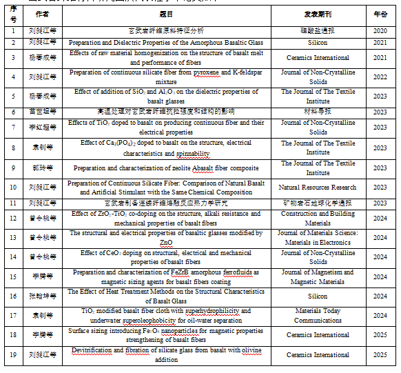 玄武岩纤维材料研究团队代表性学术论文如下: