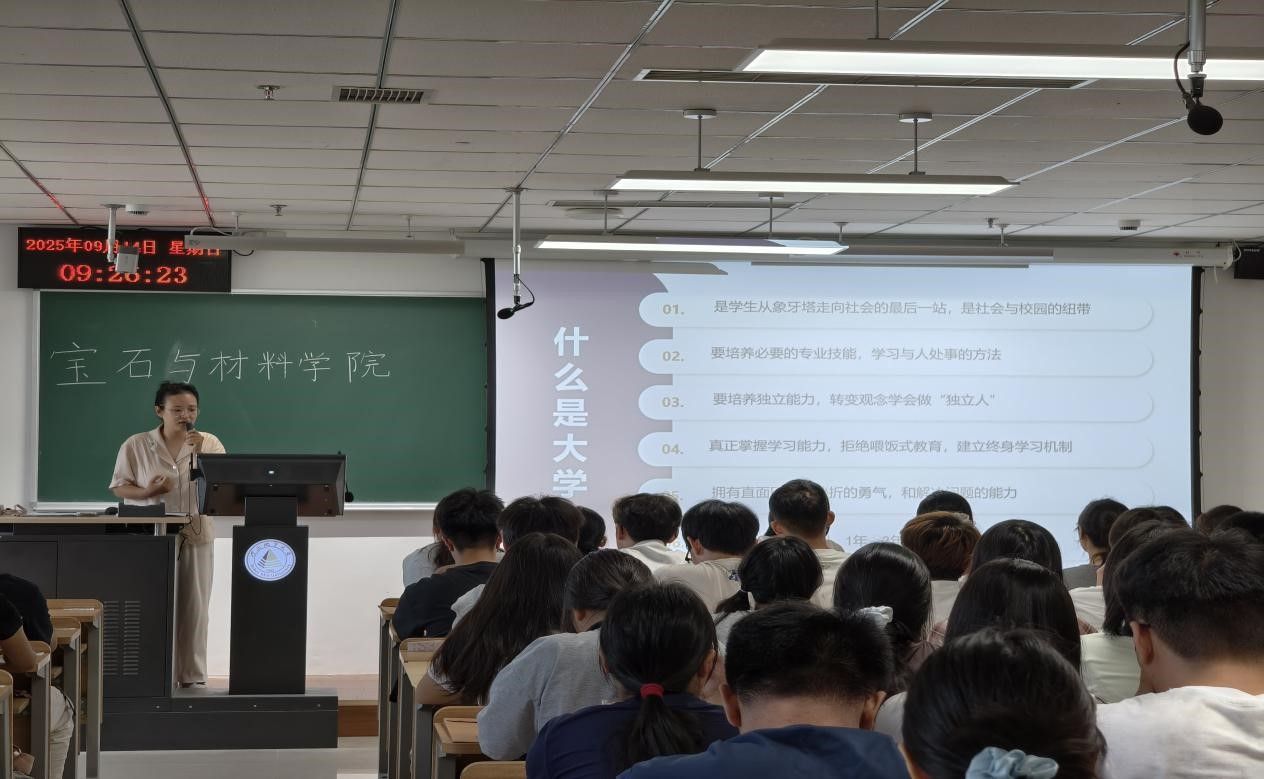 边老师围绕“什么是大学”展开讲解。通过鲜活案例,引导新生重新认知大学的学习模式与成长意义,并着重强调制定好职业规划的重要性,鼓励新生从入学之初便树立目标,做好学习规划,为未来发展筑牢根基。