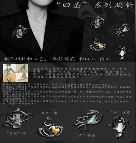 参赛学生罗碧菡的《四圣胸针》(指导教师牟云)获得铜奖,张子涵的《绽放瞬间》(指导教师金翠玲)、龚悦的《玉云珠缘》(指导教师金翠玲)、董依泽的《康穗》(指导教师牟云)、刘苏慧的《秋韵轻摇》(指导教师牟云)、刘雅馨的《相对而弈》(指导教师牟云)、全安琪的《玉双钱》(指导教师牟云)、苗珊珊的《青影》(指导教师牟云)获得了优秀奖,另有多名同学的作品获得入围奖。
