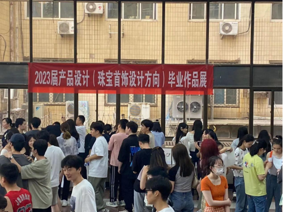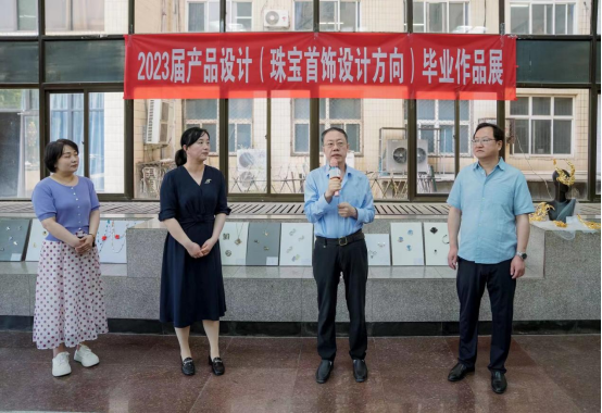 于5月16日上午在主楼一楼展厅举办了2023届产品设计(珠宝首饰设计方向)毕业作品展。校党委副书记侯书文参加此次展览,并发表讲话,首先祝贺同学们学有所成、顺利毕业。其次对同学们四年以来克服新冠肺炎疫情的困难,勤奋刻苦学习,孜孜不倦追求,顺利完成学业表示钦佩。最后祝愿同学们毕业后继续在攀登知识高峰中追求卓越,始终秉承“达观博物”的校训,立大志、明大德、成大才、担大任,在祖国和人民最需要的地方奉献青春、成就梦想,在未来征程上能够扬帆启航、鹏程万里!
