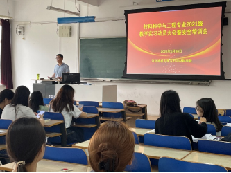 材料科学与工程专业召开实习动员大会暨安全培训会议。材料科学与工程专业2021级和2020级全体学生参加了会议,会议由材料科学与工程教研室主任刘昶江老师主持,教学实习带队教师杨春成、生产实习带队教师王定等教师参加。