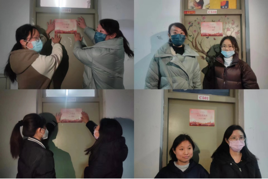 谷月娟书记、以及各辅导员深入学生宿舍,与学生党员携手将鲜艳的“党员先锋岗”和“党员宿舍”名牌悬挂于宿舍门前。