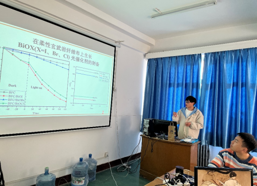 2023年11月22日上午,玄武岩纤维材料研究所研究生组会在育才校区科研一号楼505会议室开展,硕士生曾令桃进行了研究进展汇报。