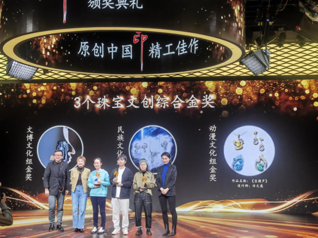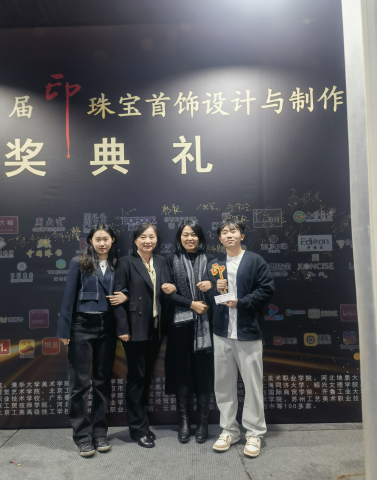 产品设计(珠宝首饰设计方向)专业胡宇凡、赵健两名同学一举揽获“品牌文化黄金组金奖”和“珠宝文创文博文化组金奖”双项殊荣。