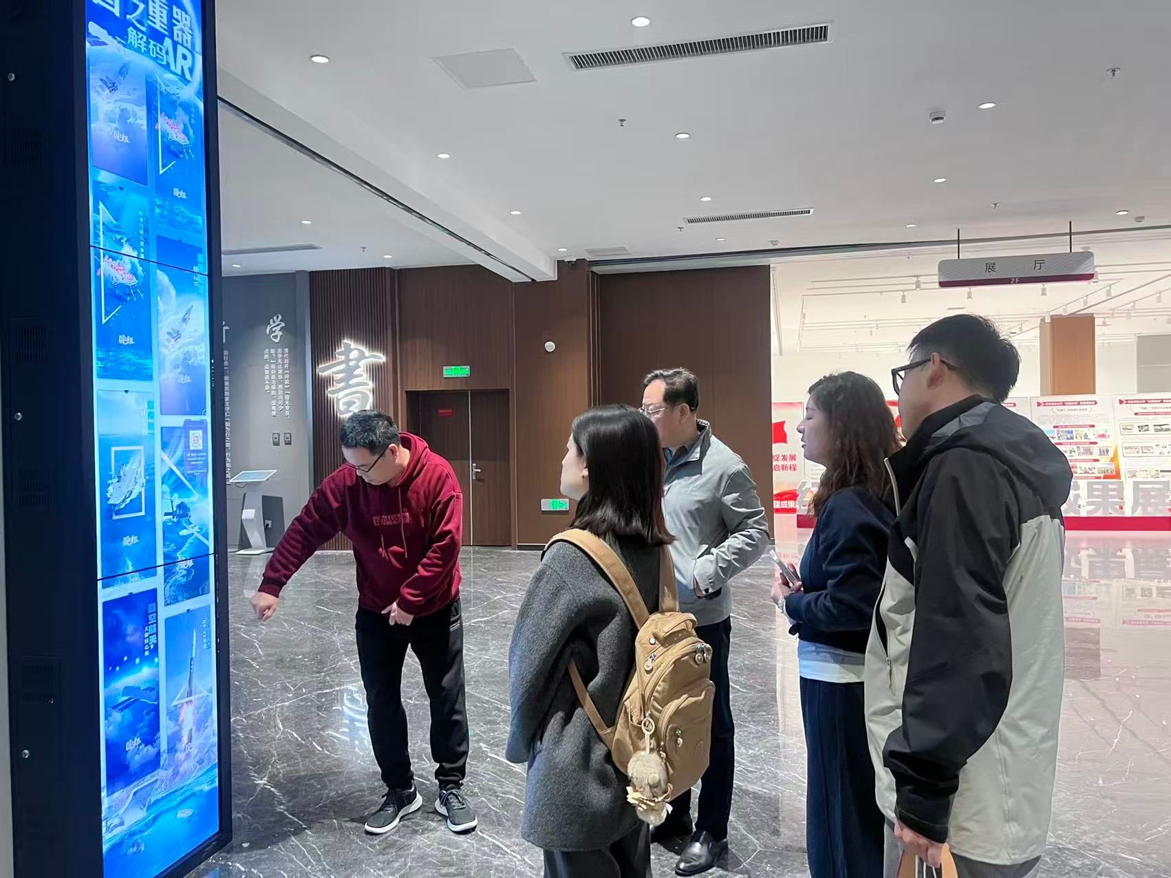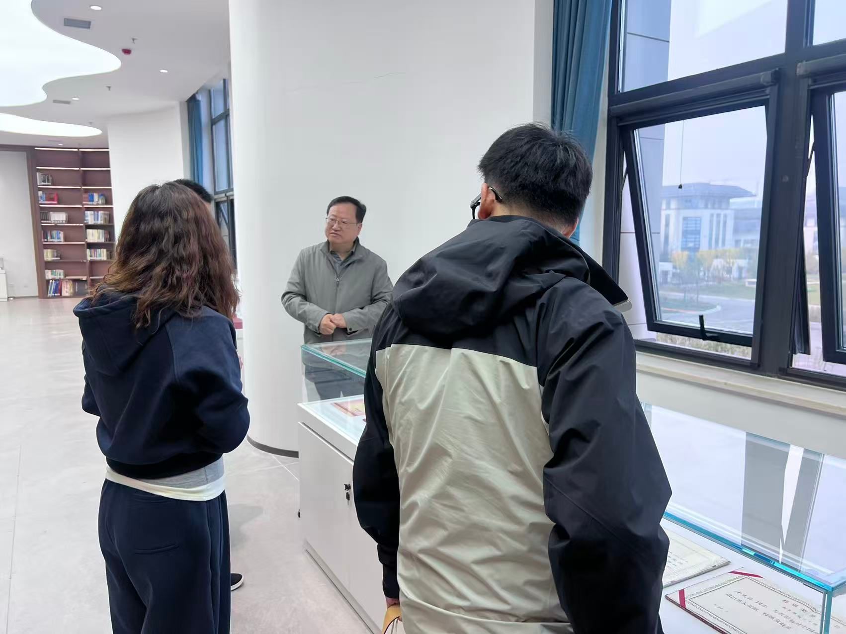 图书馆参观。一行人实地走访了李廷栋和朱讯书屋、图书馆文献资源区、特色阅览空间等区域,详细了解图书馆的馆藏规模、资源布局及数字化服务能力,对图书馆为师生提供的优质学术支撑与文化育人环境给予高度评价,进一步感受到学校深厚的学术底蕴与育人氛围。