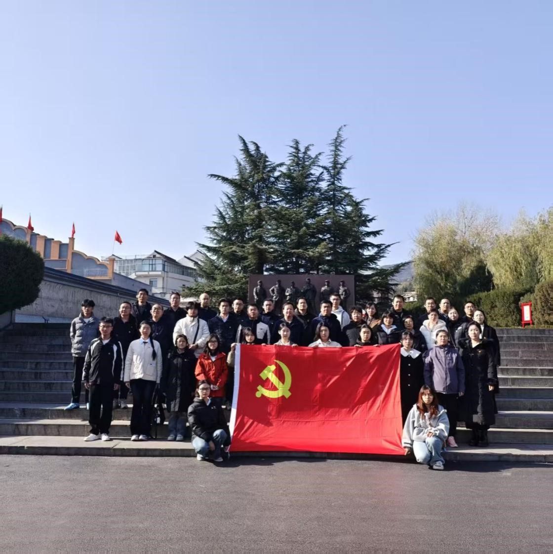 缅怀先烈丰碑,凝聚奋进力量。全体党员整齐列队,拾级而上,登临将军岭,在革命先辈纪念碑前肃立默哀,向长眠于此的革命英烈们致以最深切的哀思和崇高的敬意。巍巍太行,铮铮铁骨,回顾先辈浴血奋战的历程,大家受到了一次深刻的思想洗礼和精神淬炼。