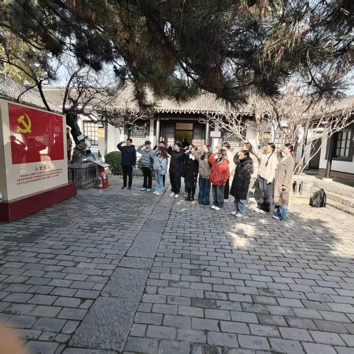 重温入党誓词,筑牢信仰之基。师生党员怀着崇敬的心情,参观了八路军129师司令部旧址。简陋的办公环境、朴素的军旅生活,让大家深刻感受到革命先辈艰苦奋斗、无私奉献的崇高品格。在司令部旧址院内,在两位首长亲手栽种的丁香树和紫荆树下,全体党员面对党旗庄严宣誓,重温入党誓词。